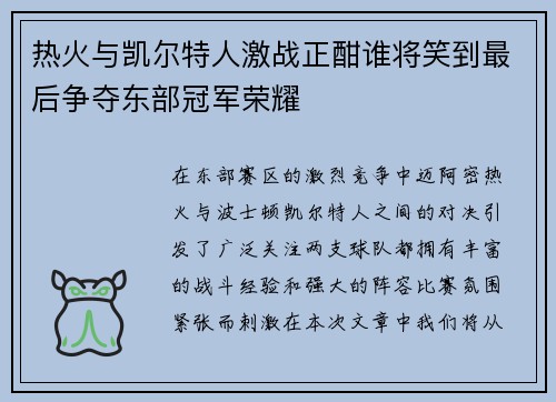 在即将到来的比赛中,圣安东尼奥马刺队与休斯敦火箭队的对决将成为一场备受瞩目的季后赛席位争夺战。两支球队在本赛季的表现可谓跌宕起伏,马刺凭借年轻球员的成长逐渐找回状态,而火箭则依靠强大的进攻火力来稳固排名。本文将从四个方面深入分析这场关键对决,包括两队近期状态、核心球员表现、战术解析以及心理因素等,以期为读者呈现出一幅生动的季后赛争夺画卷。 1、两队近期状态分析 近几周,马刺和火箭的状态都有所波动...