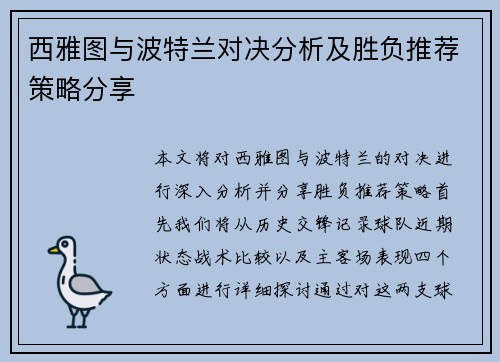 本文将对即将进行的苏黎世与克里恩斯的比赛进行全面分析和预测。首先,从两队的近期表现入手,探讨各自的状态以及战绩,以了解双方在本场比赛中的竞争力。接着,将从历史交锋记录中寻找数据支持,分析两队过往的交手情况以及可能带来的心理影响。此外,还会关注球队阵容,包括球员伤病情况、主力球员状态等因素,这些都将直接影响比赛结果。最后,通过综合考虑战术打法、主客场优势等方面,对本场比赛的胜负进行深入预测,为球迷提...